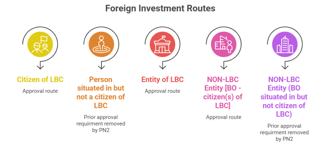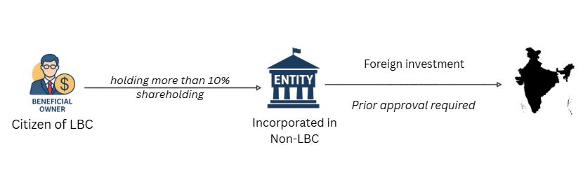 Prior approval of the government is now required for any investment by PROI from non-LBC, where the beneficial owner of an investment into India is a citizen/entity of LBC.