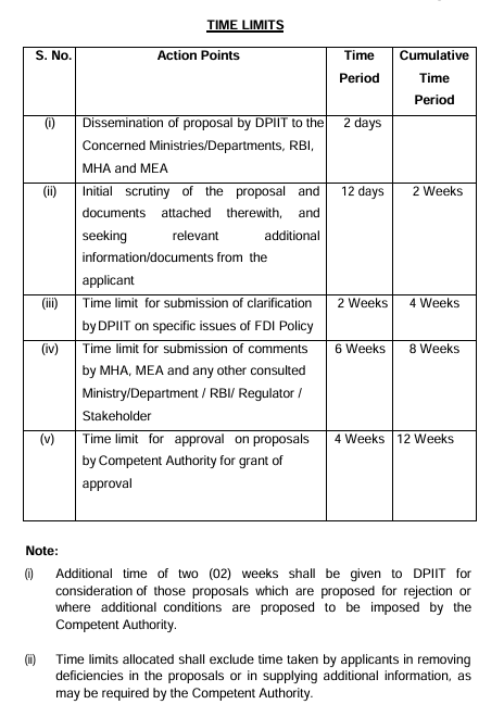 Presently, the timeline for obtaining government approval for FDI ranges between 12–14 weeks.