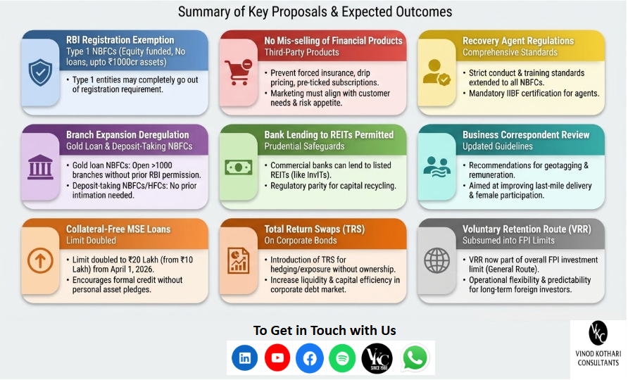 The Budget 2026 may not have brought any significant regulatory amendments or reliefs for the financial sector entities, however, the regulator has proposed a box full of surprises for the regulated entities. The Statement on Developmental and Regulatory Policies dated February 6, 2026 has proposed various significant changes. The measures span a wide spectrum, from exempting Type 1 NBFCs (with no public funds and no customer interface) from registration, to stricter norms on sale of third-party products, a harmonised recovery agent framework, permission for bank lending to REITs and an increase of collateral-free loan limits for MSMEs, among others. While the detailed guidelines for each of the proposals are yet to be issued, we provide a quick snapshot and implications of these proposals.